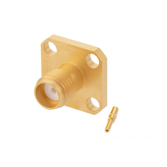 SMA Female Connector Solder Attachment 4 Hole Flange Mount for ET38325, ET38324, ET38342, .340 inch Hole Spacing