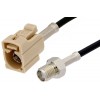 Radio frequency assembly SMA female to beige FAKRA jack cable 12 inch length using ET-RG174 coax from Ebeestock is part of the largest selections of same-day ship coaxial cables for RF, microwave and millimeter wave interconnect solutions. Ebeestock coaxial cable assembly products are used in applications requiring high quality such as laboratory RF test and measurement, rugged and designed for defense / military, telecom antenna tower component jumper connection, production environments, general use, etc. SMA female to beige FAKRA jack cable 12 inch length using ET-RG174 coax, like our other Ebeestock coaxial cable assemblies, will ship the same day and any custom SMA to FAKRA cable assembly orders will ship same day as well.