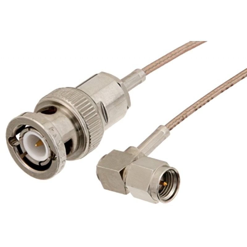 SMA Male Right Angle to BNC Male Cable 12 Inch Length Using ET-RG178 Coax