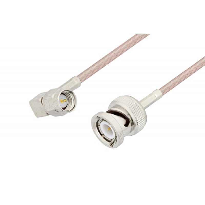 Ebeestock RF coax cable assembly is built with right angle SMA cable connection on one end and BNC cable connection on the other. Our right angle SMA to BNC cable assemblies have a male gender on end 1 and male on end 2. This SMA to BNC cable is a male to male coax assembly, ET19874, can also be known as a right angle SMA plug to BNC plug cable assembly and will be shipped same-day as it is purchased.