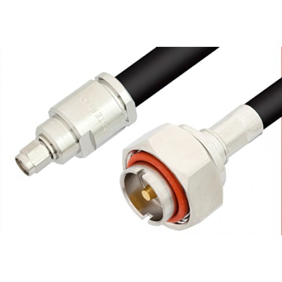 Ebeestock RF coax cable assembly is built with SMA cable connection on one end and 7/16 DIN cable connection on the other. Our SMA to 7/16 DIN cable assemblies have a male gender on end 1 and male on end 2. This SMA to 7/16 DIN cable is a male to male coax assembly, ET17267, can also be known as a SMA plug to 7/16 DIN plug cable assembly and will be shipped same-day as it is purchased.