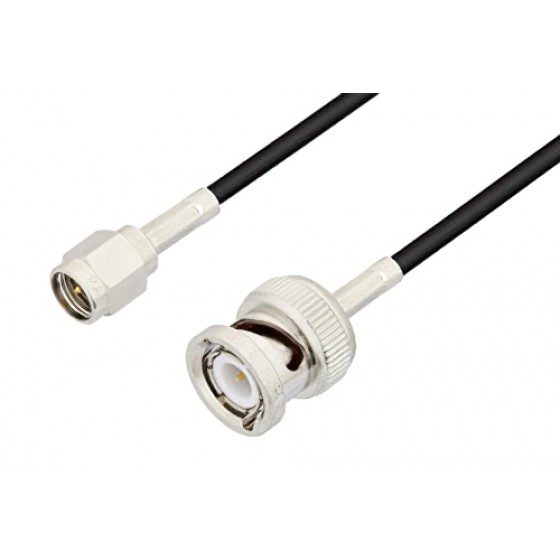 Ebeestock RF coax cable assembly is built with SMA cable connection on one end and BNC cable connection on the other. Our SMA to BNC cable assemblies have a male gender on end 1 and male on end 2. This SMA to BNC cable is a male to male coax assembly, ET21294, can also be known as a SMA plug to BNC plug cable assembly and will be shipped same-day as it is purchased.