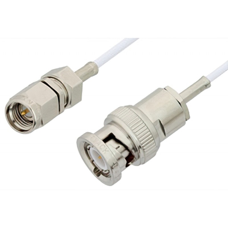 Ebeestock RF coax cable assembly is built with SMA cable connection on one end and BNC cable connection on the other. Our SMA to BNC cable assemblies have a male gender on end 1 and male on end 2. This SMA to BNC cable is a male to male coax assembly, ET20769, can also be known as a SMA plug to BNC plug cable assembly and will be shipped same-day as it is purchased.