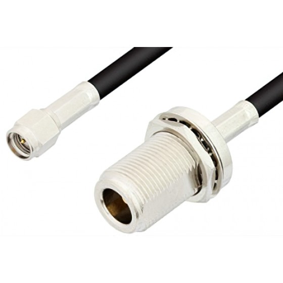 Ebeestock RF coax cable assembly is built with SMA cable connection on one end and type N bulkhead cable connection on the other. Our SMA to N type cable assemblies have a male gender on end 1 and female on end 2. This SMA to type N cable is a male to female coax assembly, ET29622, can also be known as a SMA plug to N type jack cable assembly and will be shipped same-day as it is purchased.