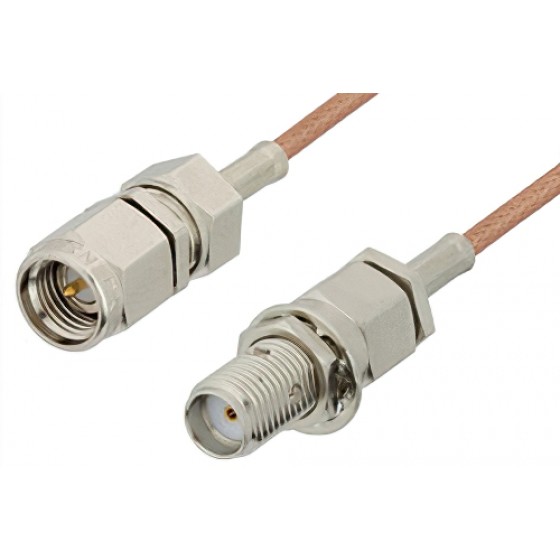 SMA Male to SMA Female Bulkhead Cable 6 Inch Length Using ET-RG178 Coax