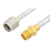 SMA plug to SMA jack cable assembly ET36964 is built with ET38337 which is a formable coax type. The Ebeestock formable SMA cable assembly is manufactured with SMA to SMA cable connectors, has a 50 Ohm impedance and is single shielded. RF specs on this 18 GHz maximum frequency SMA male to SMA female cable are located on the specifications PDF datasheet on this page along with CAD drawing and dimensions. ET36964 can also be used in the other direction and will be SMA female to SMA male cable assembly if the opposite connectivity is required.