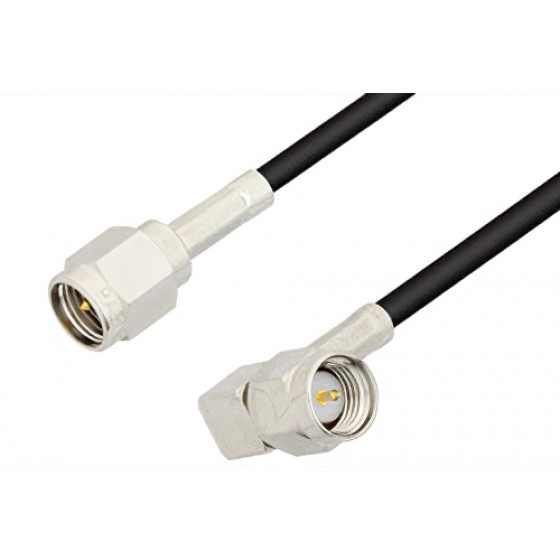 Ebeestock RF coax cable assembly is built with SMA cable connection on one end and right angle SMA cable connection on the other. Our SMA to right angle SMA cable assemblies have a male gender on end 1 and male on end 2. This SMA to SMA cable is a male to male coax assembly, ET37351, can also be known as a SMA plug to right angle SMA plug cable assembly and will be shipped same-day as it is purchased.