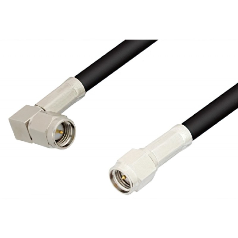 Ebeestock RF coax cable assembly is built with SMA cable connection on one end and right angle SMA cable connection on the other. Our SMA to right angle SMA cable assemblies have a male gender on end 1 and male on end 2. This SMA to SMA cable is a male to male coax assembly, ET37207, can also be known as a SMA plug to right angle SMA plug cable assembly and will be shipped same-day as it is purchased.