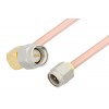 Ebeestock RF coax cable assembly is built with SMA cable connection on one end and right angle SMA cable connection on the other. Our SMA to right angle SMA cable assemblies have a male gender on end 1 and male on end 2. This SMA to SMA cable is a male to male coax assembly, ET36610, can also be known as a SMA plug to right angle SMA plug cable assembly and will be shipped same-day as it is purchased.