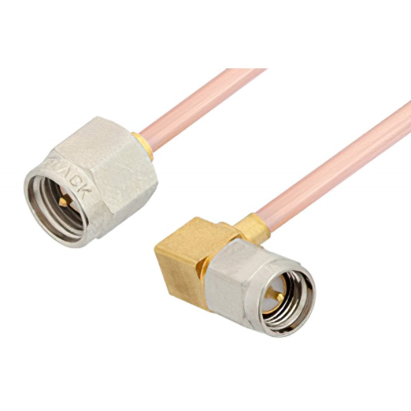 Ebeestock RF coax cable assembly is built with SMA cable connection on one end and right angle SMA cable connection on the other. Our SMA to right angle SMA cable assemblies have a male gender on end 1 and male on end 2. This SMA to SMA cable is a male to male coax assembly, ET36617, can also be known as a SMA plug to right angle SMA plug cable assembly and will be shipped same-day as it is purchased.