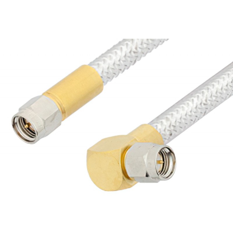 Ebeestock RF coax cable assembly is built with SMA cable connection on one end and right angle SMA cable connection on the other. Our SMA to right angle SMA cable assemblies have a male gender on end 1 and male on end 2. This SMA to SMA cable is a male to male coax assembly, ET37366, can also be known as a SMA plug to right angle SMA plug cable assembly and will be shipped same-day as it is purchased.