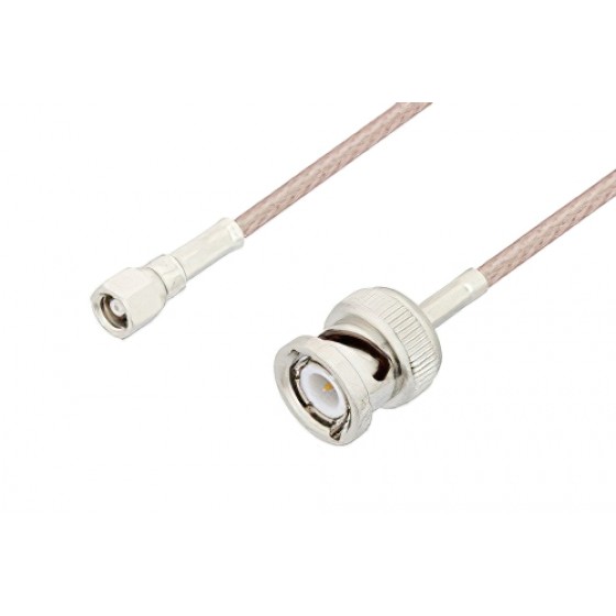 Ebeestock RF coax cable assembly is built with SMC cable connection on one end and BNC cable connection on the other. Our SMC to BNC cable assemblies have a plug gender on end 1 and male on end 2. This SMC to BNC cable is a plug to male coax assembly, ET21276, can also be known as a SMC male to BNC plug cable assembly and will be shipped same-day as it is purchased.