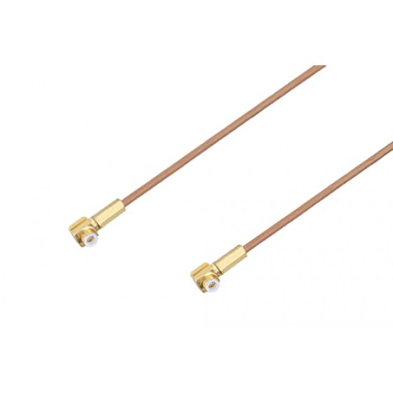 MMBX right angle male to MMBX right angle male cable assembly is just one of more than 45,000 in-stock RF products available. Ebeestock is where to buy a high quality MMBX to MMBX cable assembly for quick shipment worldwide. Variations of MMBX cable assemblies can also be built and will ship same-day as well, search this website or contact us for assistance. High quality custom RF cable assembly products for microwave and millimeter wave radio transmitter receiver, antenna jumper, component inter-connection and more for RF test & measurement labs, rugged and MIL-STD designed military / defense, aerospace, telecom, phase stable, phase and delay matching, outdoor and harsh environment and other radio frequency applications can be manufactured. For all these reasons and more, Ebeestock is one of the best websites where to find and buy quality RF cable assemblies like this snap-on MMBX plug right angle to snap-on MMBX plug right angle cable 4 inch length using ET-RG178 coax.