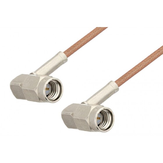 Ebeestock RF coax cable assembly is built with right angle SSMA cable connection on one end and right angle SSMA cable connection on the other. Our right angle SSMA to right angle SSMA cable assemblies have a male gender on end 1 and male on end 2. This SSMA to SSMA cable is a male to male coax assembly, ET32631, can also be known as a right angle SSMA plug to right angle SSMA plug cable assembly and will be shipped same-day as it is purchased.
