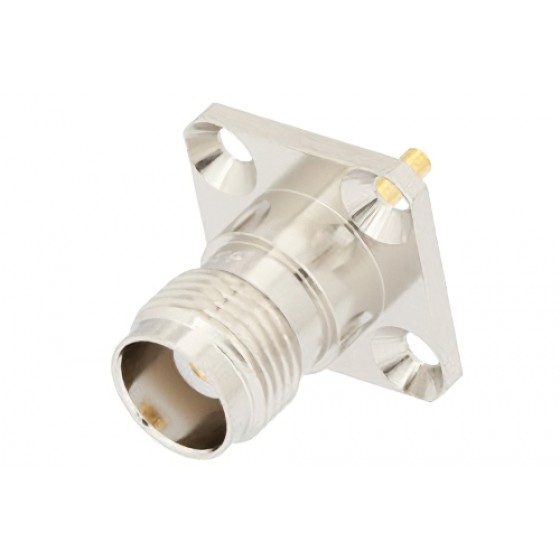 TNC Female Connector Solder Attachment 4 Hole Flange Mount Solder Cup Terminal, .500 inch Hole Spacing