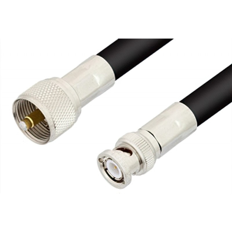 Ebeestock RF coax cable assembly is built with UHF cable connection on one end and BNC cable connection on the other. Our UHF to BNC cable assemblies have a male gender on end 1 and male on end 2. This UHF to BNC cable is a male to male coax assembly, ET20897, can also be known as a UHF plug to BNC plug cable assembly and will be shipped same-day as it is purchased.