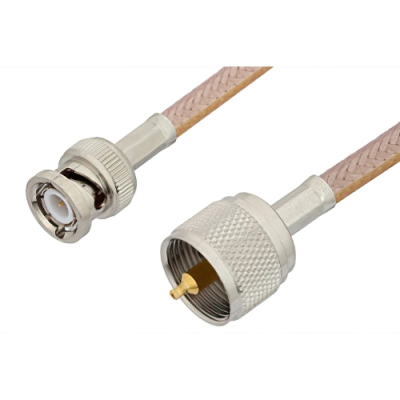 Ebeestock RF coax cable assembly is built with UHF cable connection on one end and BNC cable connection on the other. Our UHF to BNC cable assemblies have a male gender on end 1 and male on end 2. This UHF to BNC cable is a male to male coax assembly, ET20617, can also be known as a UHF plug to BNC plug cable assembly and will be shipped same-day as it is purchased.