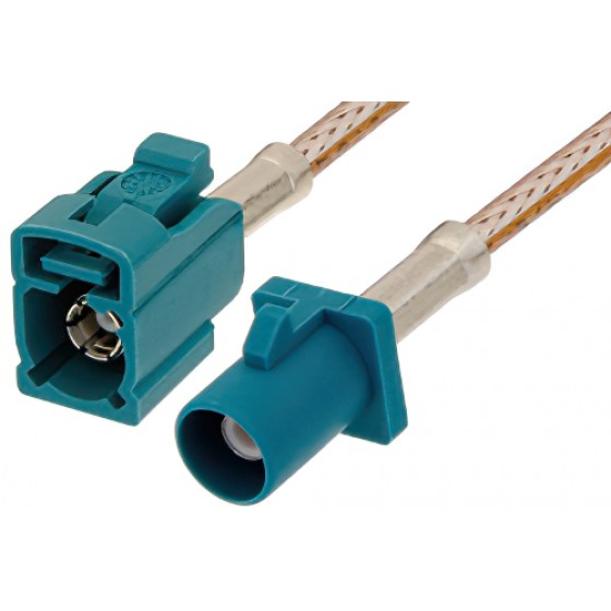 Radio frequency assembly water blue FAKRA plug to FAKRA jack cable 12 inch length using ET-RG316 coax from Ebeestock is part of the largest selections of same-day ship coaxial cables for RF, microwave and millimeter wave interconnect solutions. Ebeestock coaxial cable assembly products are used in applications requiring high quality such as laboratory RF test and measurement, rugged and designed for defense / military, telecom antenna tower component jumper connection, production environments, general use, etc. Water blue FAKRA plug to FAKRA jack cable 12 inch length using ET-RG316 coax, like our other Ebeestock coaxial cable assemblies, will ship the same day and any custom FAKRA to FAKRA cable assembly orders will ship same day as well.